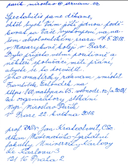 Řeč děkana MFF UK prof. Kratochvíla (délka 12:56)